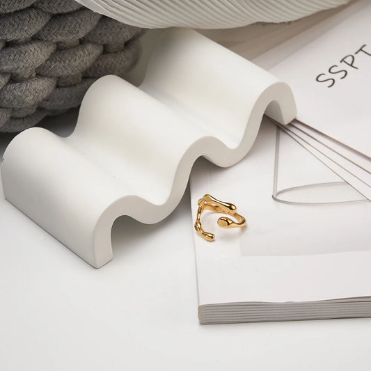 Irregular Wide Chunky Silver Open Ring for Women Man Gold Tone Mirror Finish Handmade Jewelry